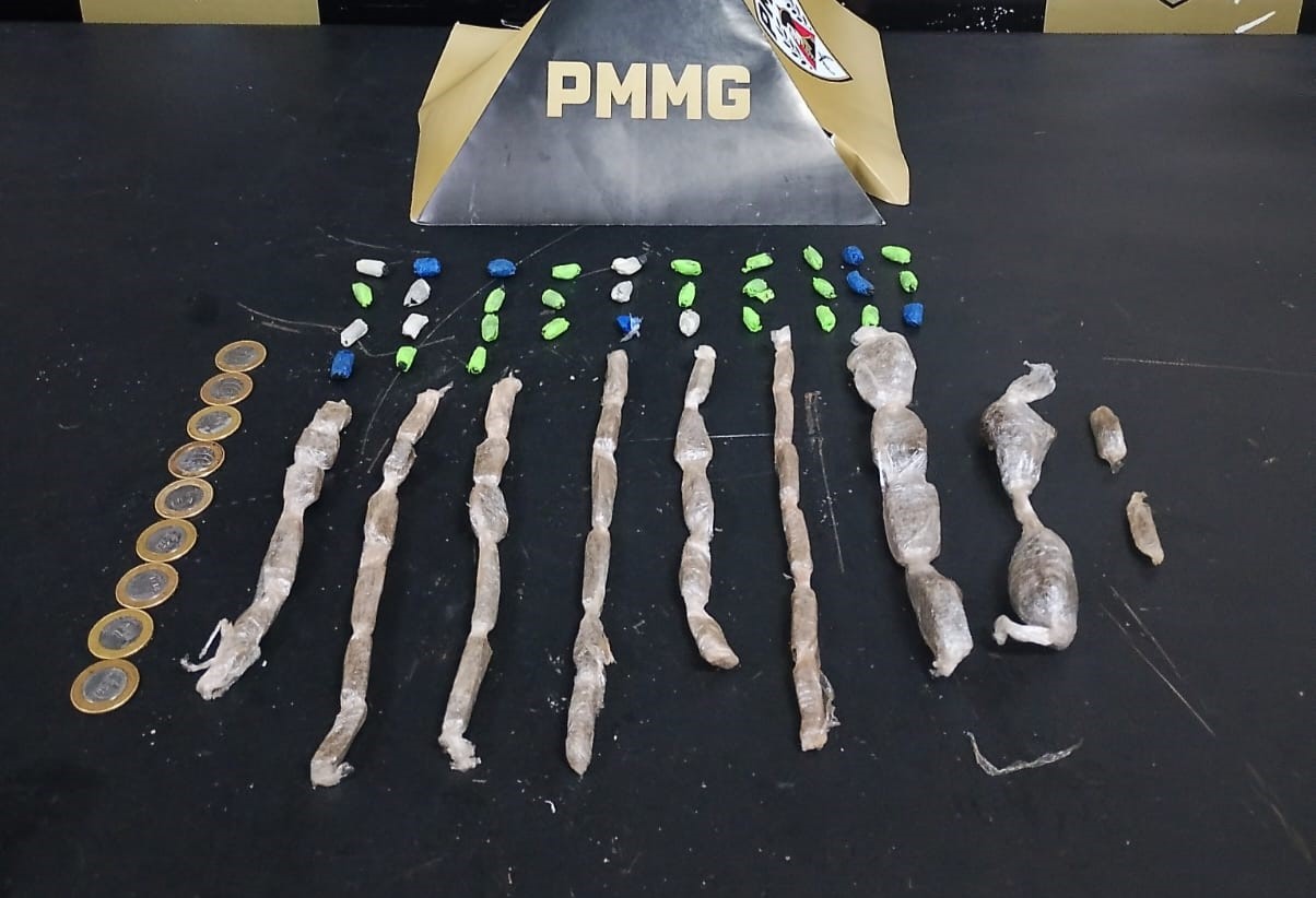 O suspeito foi abordado no local e, no interior da bolsa, foram encontrados entorpecentes e dinheiro. Durante diligências, outras porções de drogas foram localizadas em um terreno próximo, na mesma via.