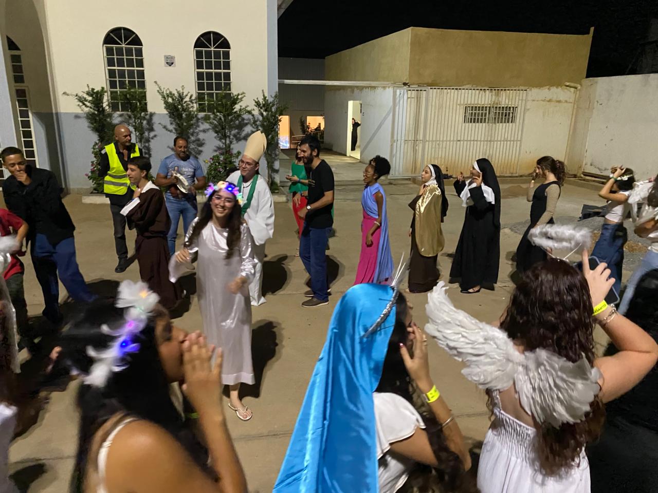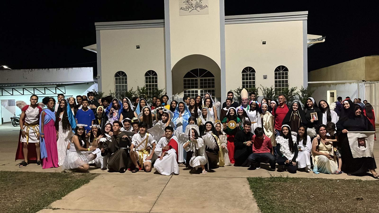 Os participantes foram caracterizados de santos e santas da Igreja, representando de forma criativa e alegre o chamado universal à santidade.