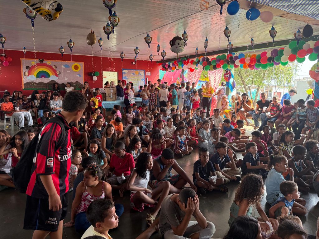 Durante a tarde, foram servidos lanche, pipoca e sorvete, garantindo o sorriso e a energia da garotada até o encerramento.