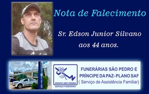 Nota de falecimento: Sr. Edson Junior Silvano aos 44 anos.