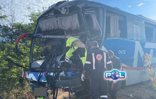 Ônibus bate na traseira de outro, sai da pista e para próximo a uma ribanceira, deixando feridos e uma pessoa presa às ferragens, na BR-251.