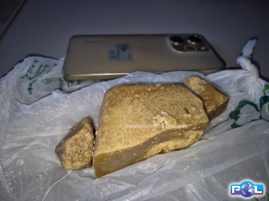 A substância entorpecente e um celular foram apreendidos pelo crime relacionado a narcóticos e entregues à Delegacia para as demais providências legais.