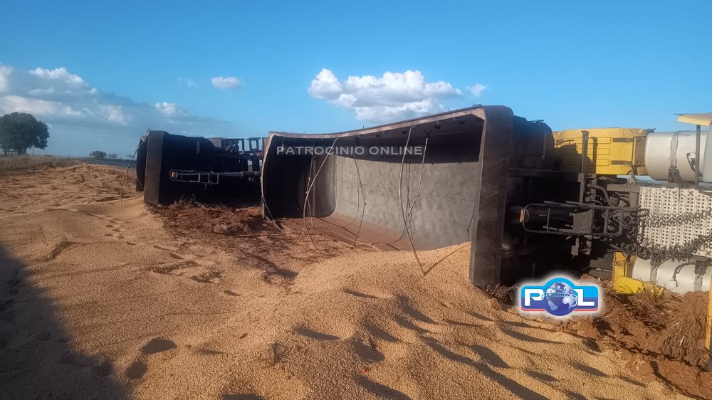 A Polícia Militar Rodoviária e o SAMU foram acionados na tarde de quarta-feira, 12/11, por volta das 16h30min, para atender um tombamento de um caminhão carregado com soja a granel, que se encontrava fora da pista de rolamento, na BR-146, km 78, no município de Serra do Salitre.