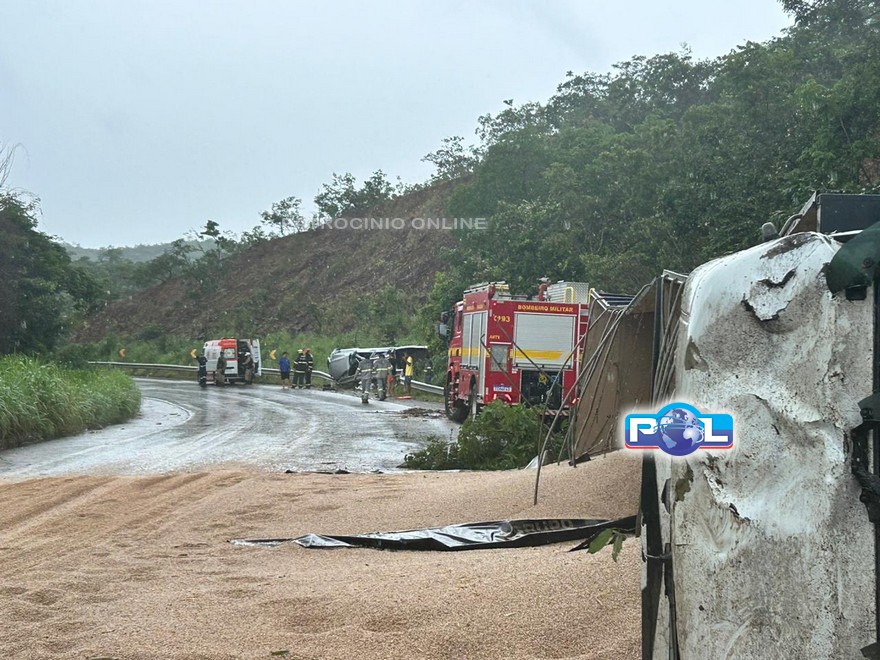 A Polícia Militar Rodoviária, Samu e os militares do Corpo de Bombeiros foram acionados na tarde desta quarta-feira, 11/2, por volta das 12h06min, para um grave acidente com vítima fatal envolvendo uma caminhonete Hilux e uma carreta carregada com grãos na BR-251, km 931, no município de Unaí/MG.