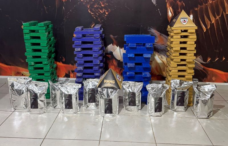 Durante busca veicular, foi localizada grande quantidade de drogas distribuídas no interior do automóvel: foram apreendidas 180 barras de substância análoga à maconha, 10 sacos contendo substância análoga à flor de maconha, R$ 590,00 em moeda corrente e quatro telefones celulares. Diante dos fatos, foi dada voz de prisão aos suspeitos, sendo encaminhados à delegacia de plantão. O veículo Vw/Polo branco foi removido ao pátio credenciado.