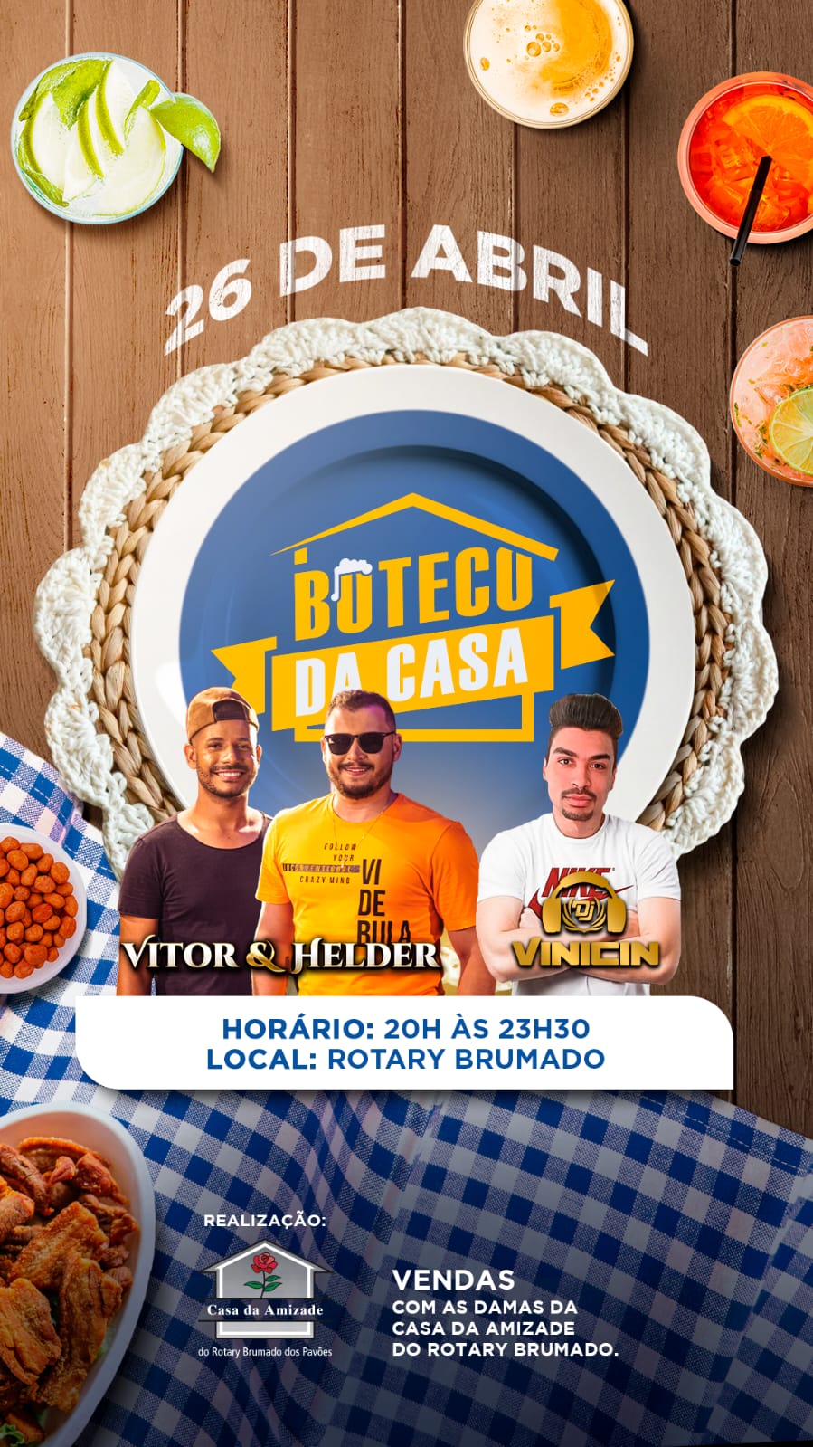 A Casa da Amizade do Rotary de Patrocínio Brumado dos Pavões realiza, no próximo dia 26 de abril, a edição 2025 do seu tradicional evento beneficente, agora reformulado como “Buteco da Casa”.