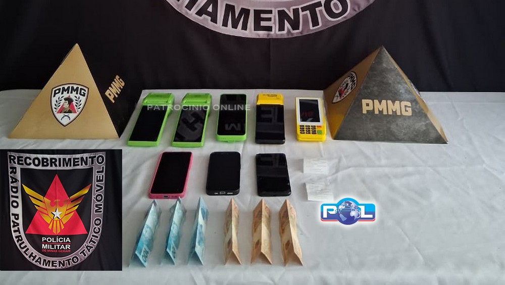 Foram apreendidos 05 maquininhas de cartão, 03 celulares, R$ 450,00 e 02 recibos de maquininhas relativos ao crime.