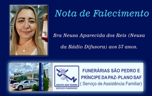 Nota de falecimento: Sra Neusa Aparecida dos Reis (Neusa da Rádio Difusora) aos 57 anos.