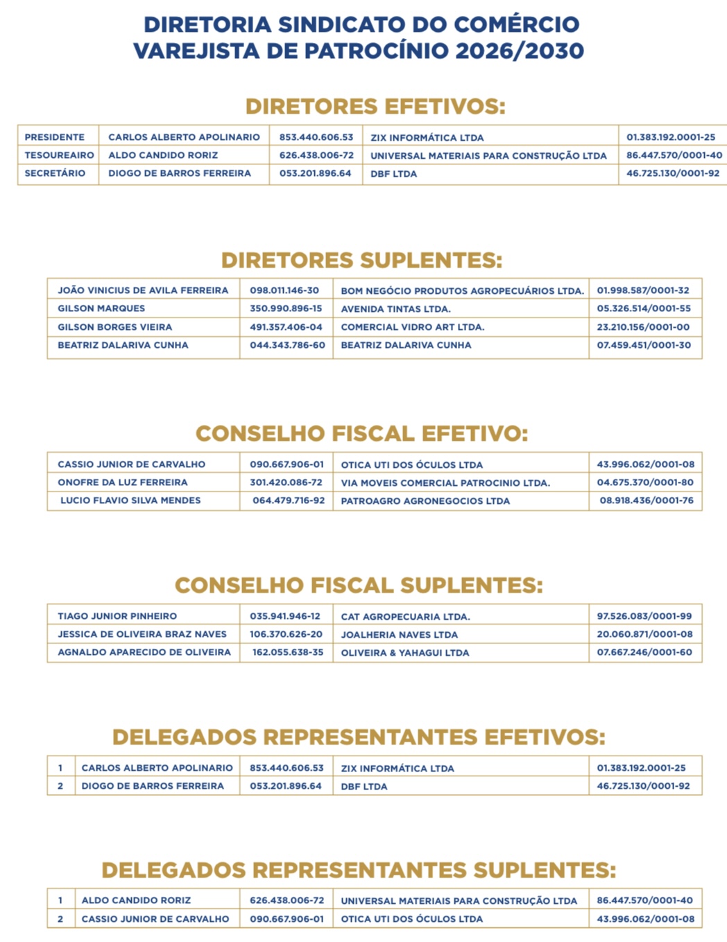 A Conecta Patrocínio – Chapa 01, encabeçada por Carlos Apolinário, atual presidente, venceu as eleições para o Sindicomércio de Patrocínio.
