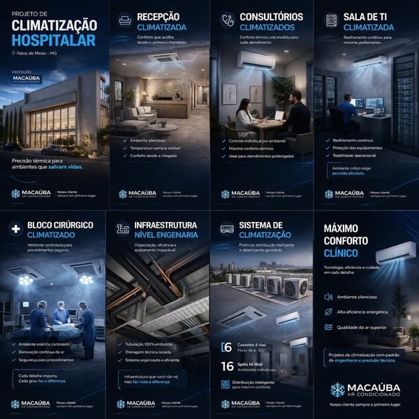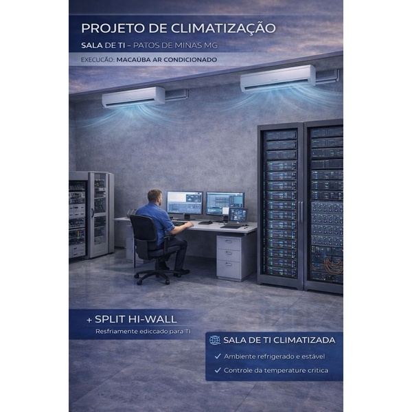 Foi pensando nisso que desenvolvemos este projeto de climatização em Patos de Minas com padrão de engenharia, garantindo controle térmico preciso, estabilidade contínua e segurança para todos os ambientes.