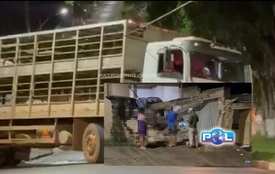 VÍDEO: Caminhão carregado de suínos perde freio ao subir avenida, perde controle e colide com residência, derrubando muro e portão no bairro Morada Nova