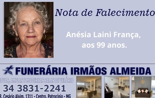 Nota de falecimento: Anésia Laini França, aos 99 anos.