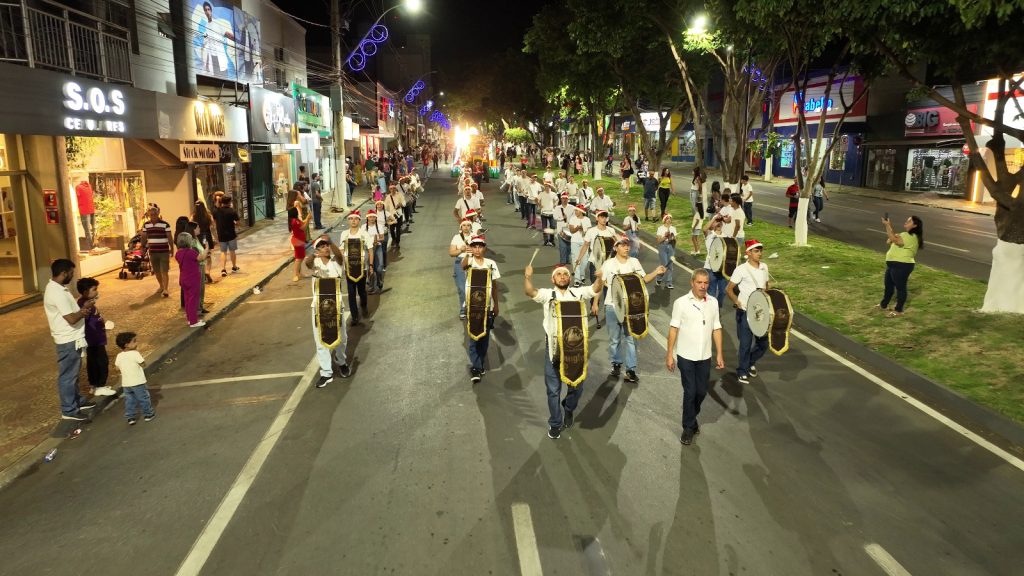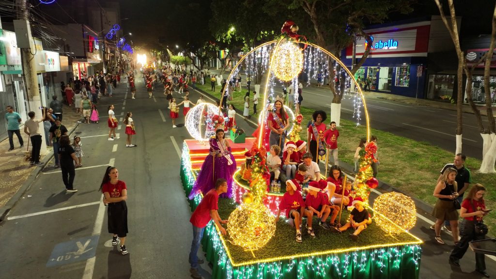 A programação começou com um grande cortejo pelas ruas centrais, reunindo autoridades, grupos culturais, fanfarras do Colégio ABC e Dom Lustosa, a Banda Abel Ferreira e três carros alegóricos, incluindo o mais aguardado, que trouxe o Papai Noel.