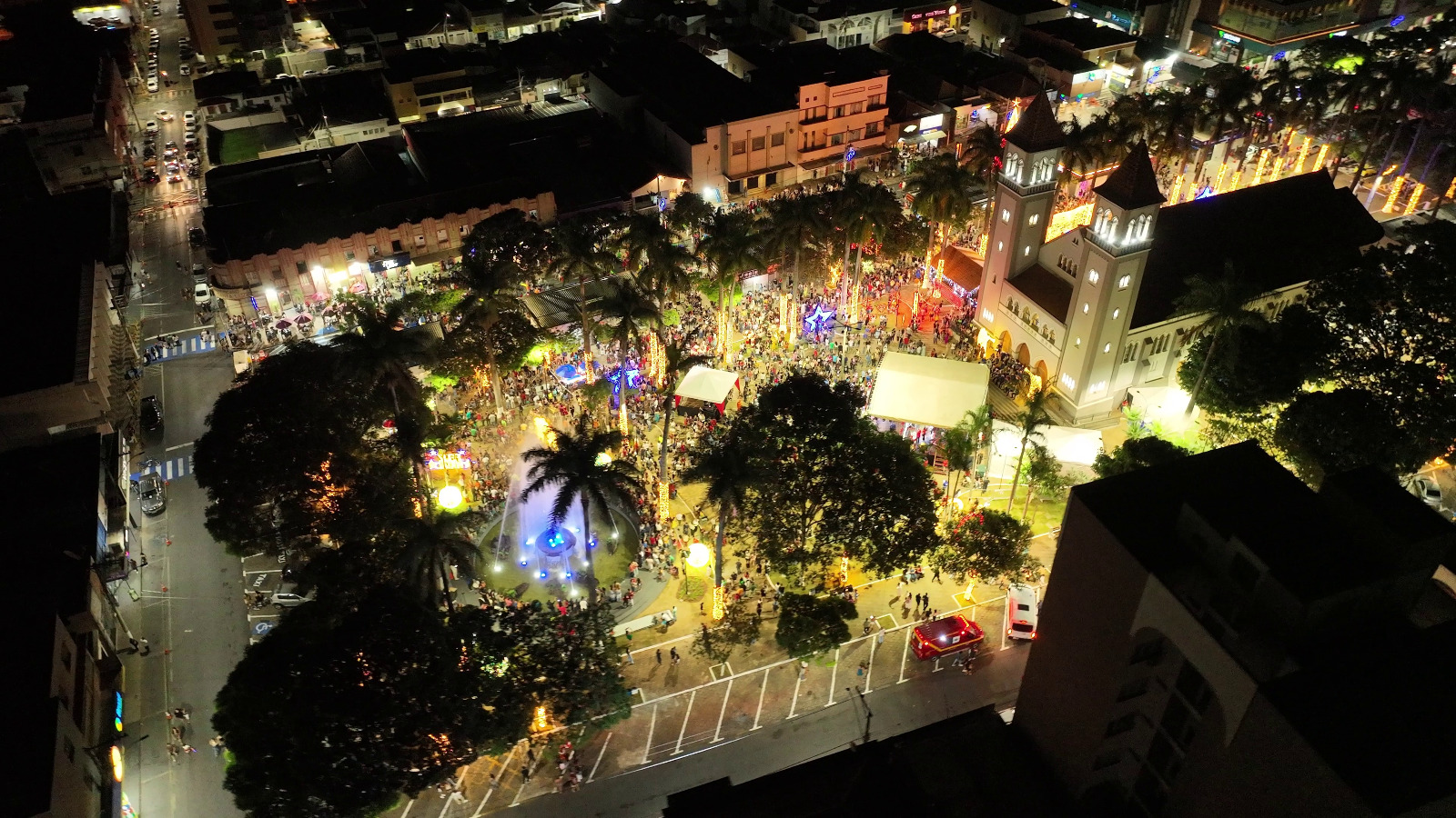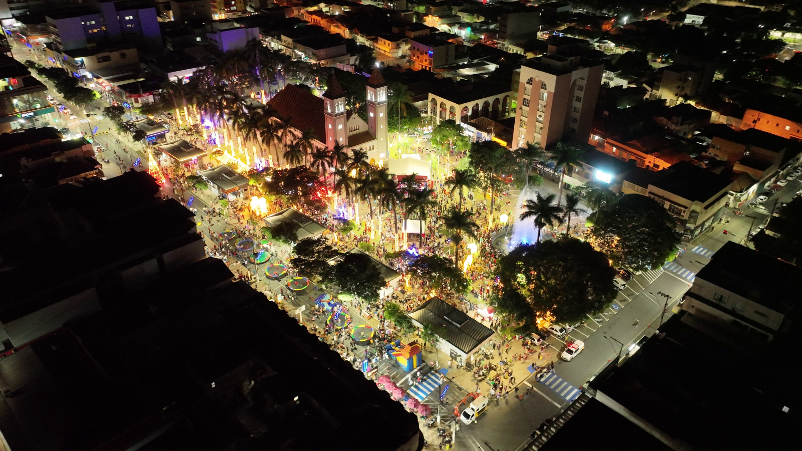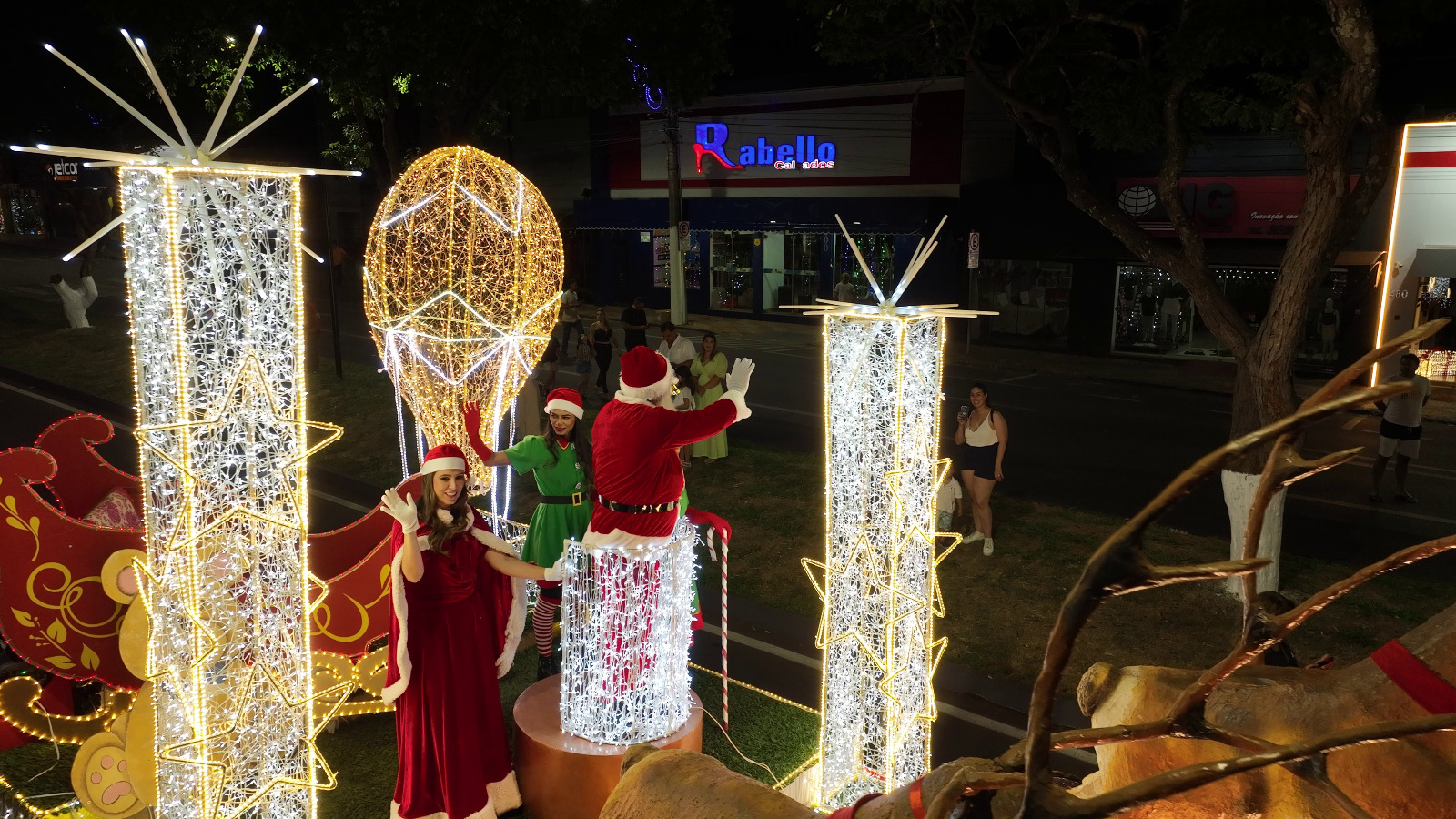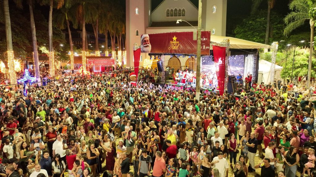 Na Praça Santa Luzia, a abertura oficial reuniu centenas de famílias que acompanharam a contagem regressiva conduzida pelo Prefeito Gustavo Brasileiro e pela Primeira-Dama, Dra. Gabriela Guimarães Brasileiro, acendendo a iluminação natalina que transforma a cidade nessa época especial. Em seguida, o Papai Noel recebeu a chave da cidade, símbolo do início das celebrações.