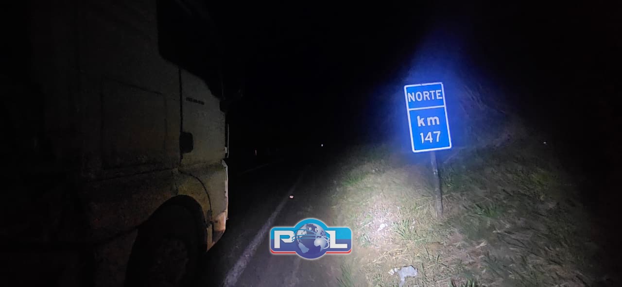 Não foram identificadas marcas de frenagem, indicando ausência de reação do condutor da caminhonete, que veio a óbito no local.