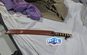 Após agredir ex-companheira na frente dos filhos e tomar celular durante ligação á PM, homem é preso com facão que era utilizado para intimidar