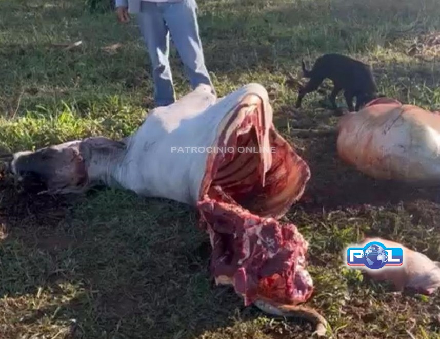 Segundo informações, criminosos invadiram uma fazenda, abateram uma vaca e furtaram a carne, deixando os restos do animal no local.