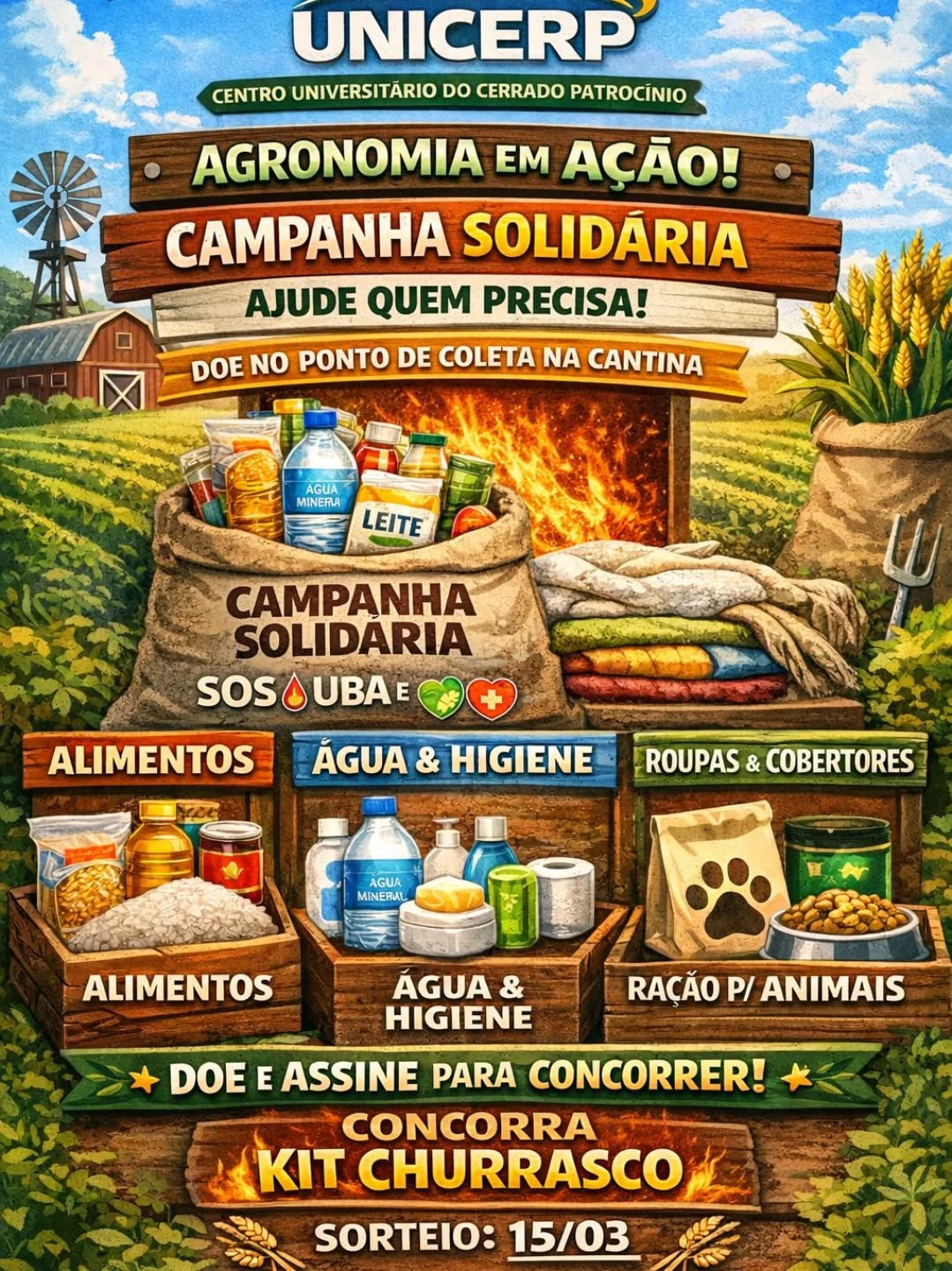 O curso de Agronomia do Centro Universitário do Cerrado Patrocínio (UNICERP) lançou a campanha “Agronomia em Ação”, uma iniciativa solidária para arrecadar doações destinadas às famílias de Ubá e Juiz de Fora, vítimas das recentes enchentes que atingiram a região.