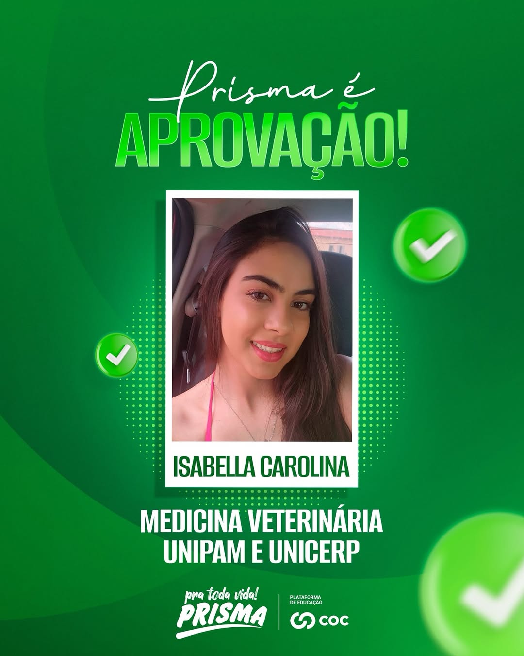O Colégio Prisma parabeniza você pela aprovação! Cada conquista é o resultado de dedicação, esforço e propósito. Seguimos orgulhosos por fazer parte dessa trajetória de sucesso!