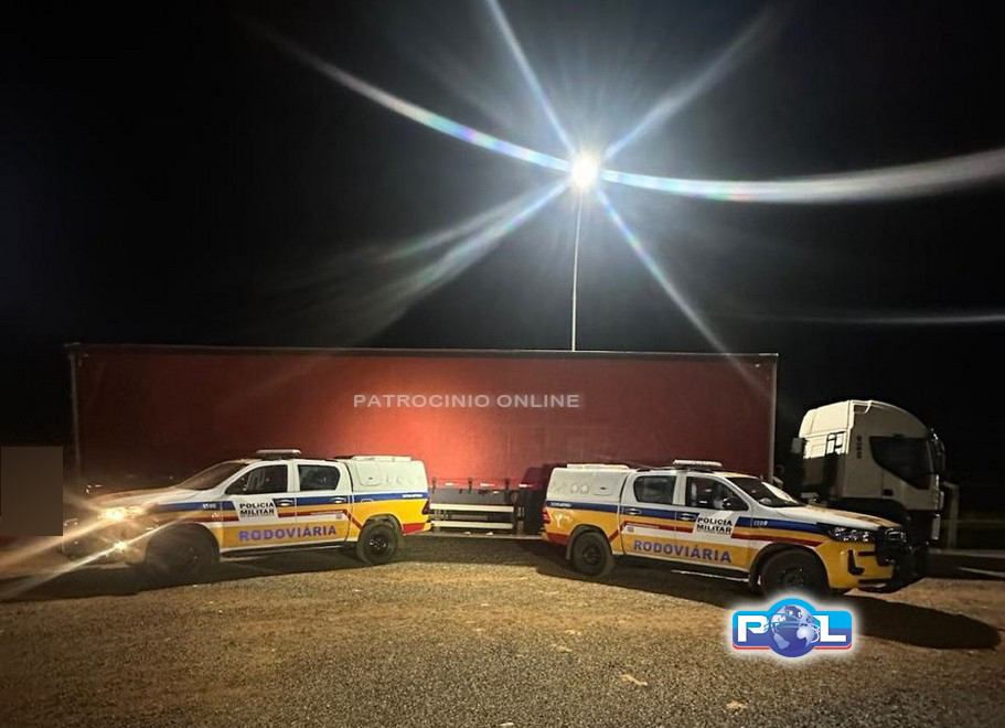 Os militares, na noite de quarta-feira, 12/11, por volta das 20h25min, no local da denúncia, na BR-146, fizeram a abordagem de um caminhão idêntico ao do solicitante, ostentando a placa do mesmo veículo.