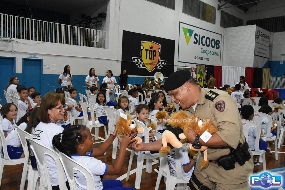 O mascote Daren animou a cerimônia, interagindo com as crianças e, juntamente com as autoridades, entregou lembranças a todos os formandos, celebrando o encerramento de mais uma etapa do programa no município.