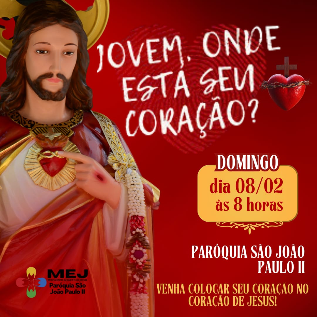 O MEJ realizará seu próximo encontro no dia 8 de fevereiro, na Igreja Nossa Senhora da Piedade, pertencente à Paróquia São João Paulo II. O encontro terá início às 8h0000min e será encerrado com a Santa Missa às 19h00min.