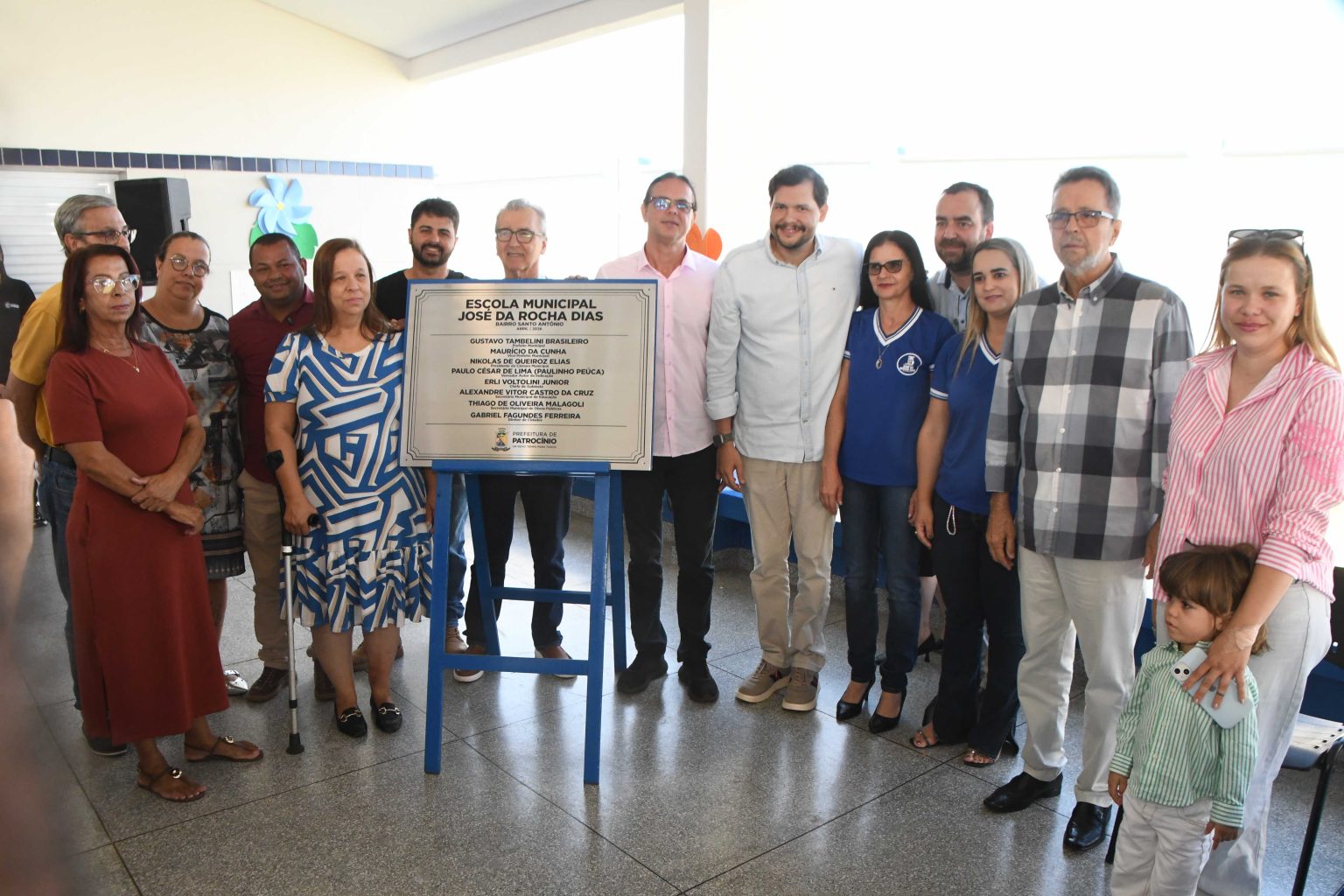 Durante os pronunciamentos, o prefeito destacou a ampliação da rede municipal de ensino e os investimentos realizados na área educacional, enquanto o secretário de Educação abordou a estrutura da escola e o planejamento pedagógico. Representando a família, José Carlos Dias relembrou a trajetória de José da Rocha Dias, ressaltando seu legado de trabalho, simplicidade e contribuição à comunidade.