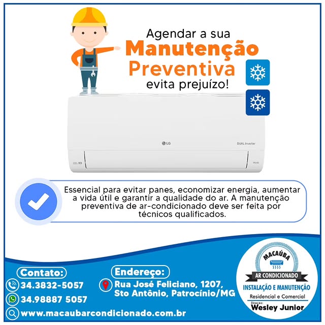 Agendamento através do: 34-3832-5057 34-9-8887-5057 ou pelo site www.macaubaarcondicionado.com.br