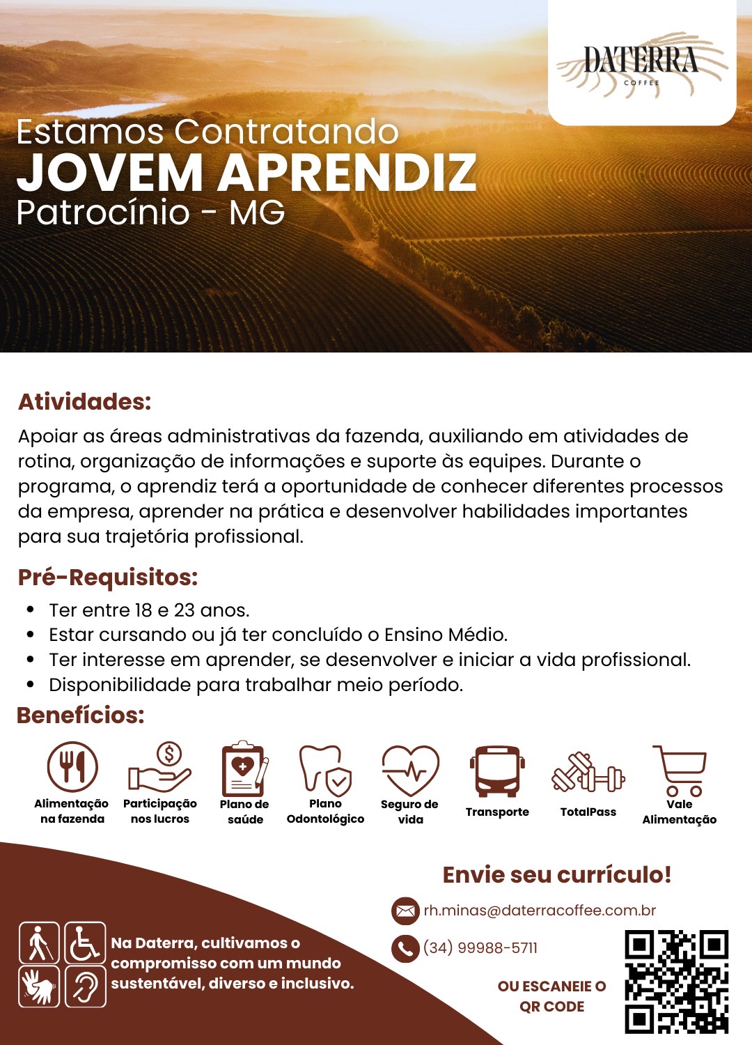 Fazenda Daterra contrata JOVEM APRENDIZ