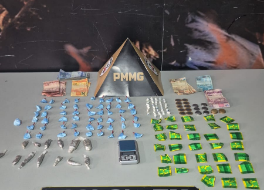 Após a abordagem, foram localizados com o suspeito dinheiro em espécie e um aparelho celular. Na sacola dispensada pelo indivíduo, foram encontradas porções de substâncias análogas à cocaína, maconha e haxixe.