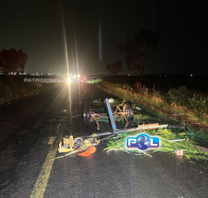 Os militares do Corpo de Bombeiros, Samu e a Polícia Militar Rodoviária foram acionados na noite de domingo, 4/1/26, por volta das 20h45min, para uma colisão entre um ônibus e uma carroça na MG-223, sentido Caldas Novas para Araguari, próximo ao posto da Polícia Militar Rodoviária.