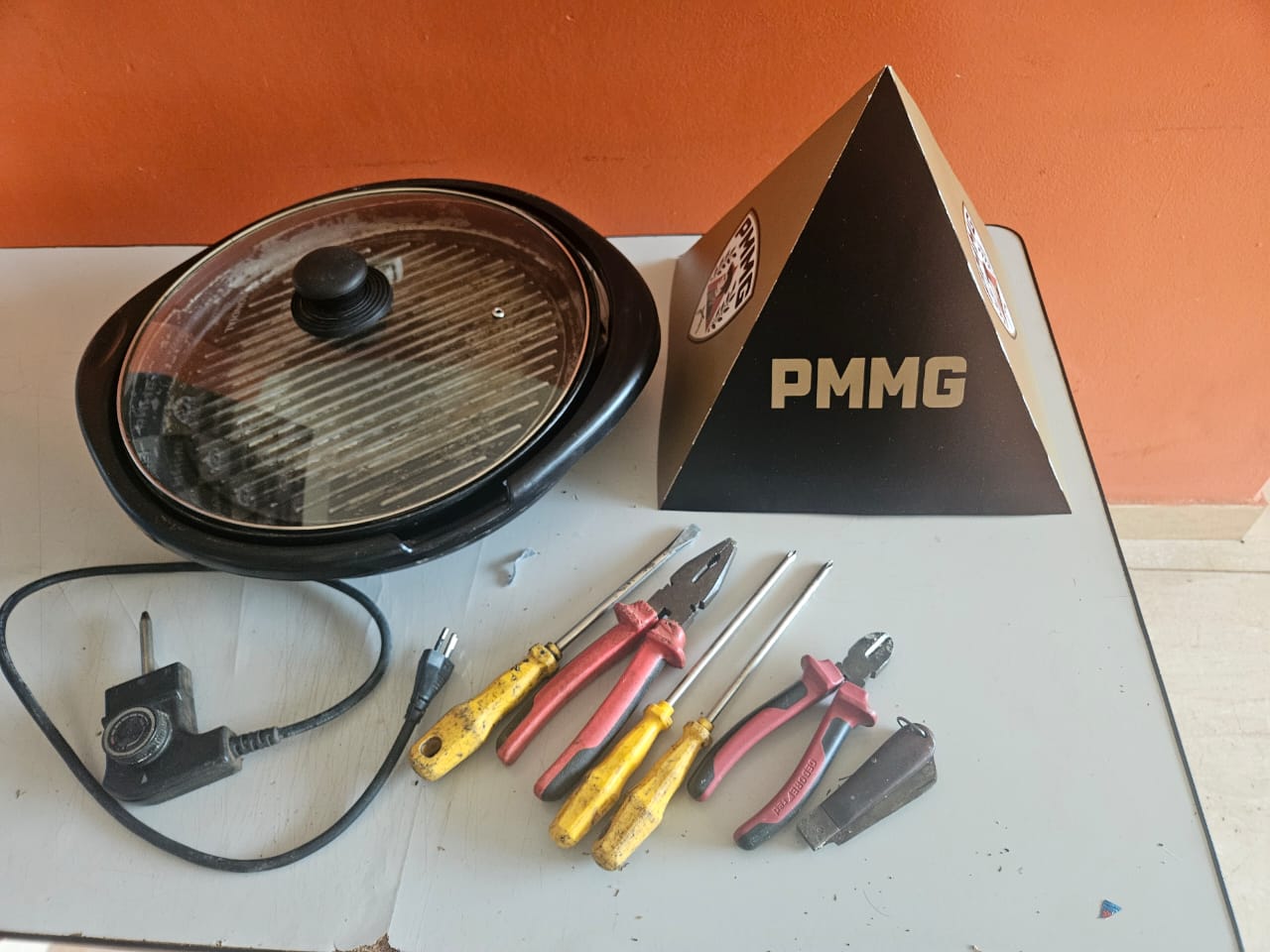 Os policiais encontraram com ele alguns dos materiais furtados, incluindo uma panela e ferramentas.