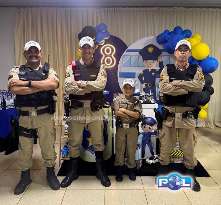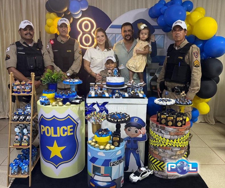 Por isso, o tema do aniversário foi o universo policial, sonho que a criança deseja realizar um dia, tornando-se policial.