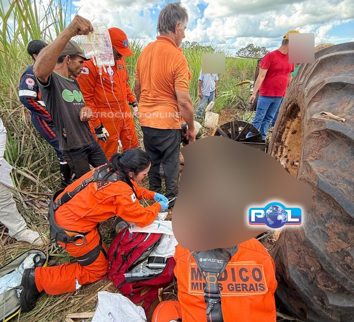 UBERABA (MG) - Os militares do Corpo de Bombeiros e Samu foram acionados na noite de quinta-feira, às 19h00, para um grave acidente envolvendo uma máquina agrícola na MGC 455, na zona rural de Campo Florido.