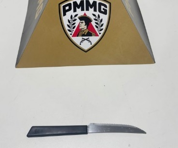 Os militares, durante a busca pessoal, localizaram uma faca em sua cintura, objeto que, segundo apurado, havia sido retirado do interior do estabelecimento antes da prática do furto.