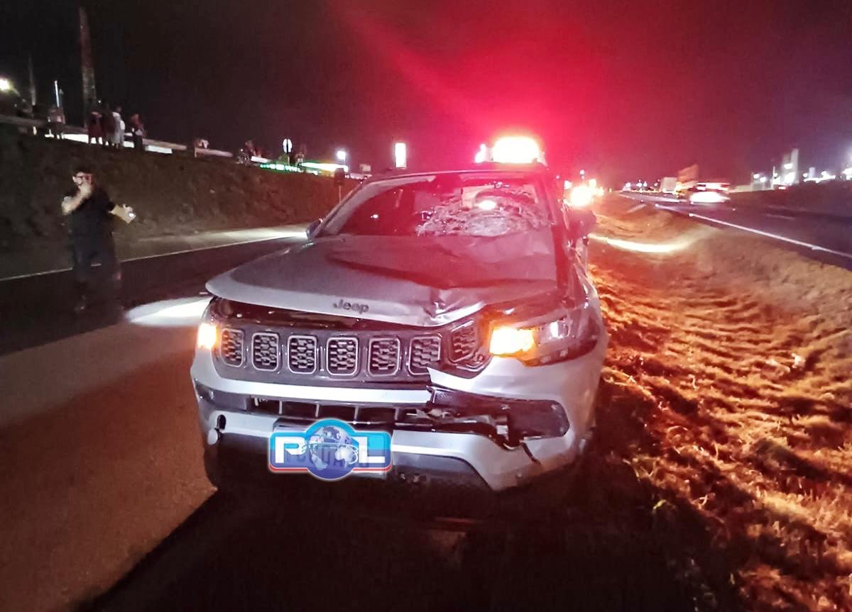 O fato envolveu um Jeep Compass, que seguia no sentido Belo Horizonte, quando um pedestre atravessou a rodovia e foi atingido pelo veículo.