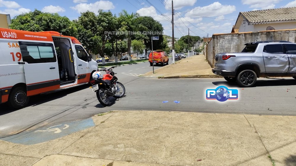 PATROCÍNIO (MG) - Os militares do Corpo de Bombeiros e o Samu foram acionados na manhã de quarta-feira, 12/11, por volta das 11h00min, para um acidente entre uma moto e uma Fiat Toro próximo a uma quadra de futebol, no cruzamento da rua Oscar Rodarte com a avenida Juscelino Kubitschek, bairro Santa Terezinha, em Patrocínio.