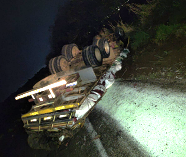 UBERABA (MG)- Na madrugada desta terça-feira (18), por volta das 01h05, um caminhão de carga capotou na Avenida Filomena Cartafina, no KM 05 da rodovia, resultando em ferimentos no motorista.