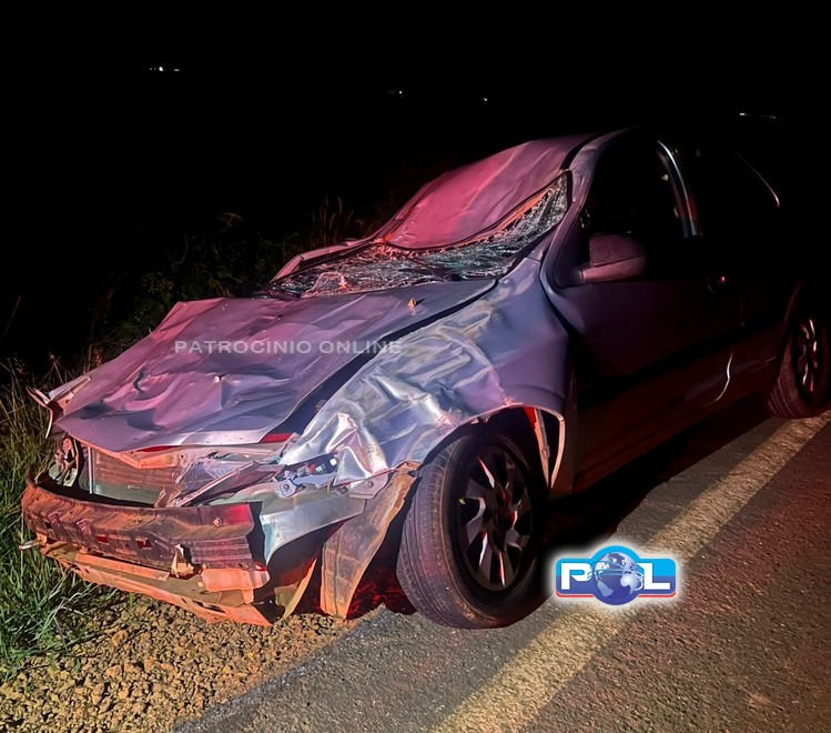 Os militares realizaram, no local, contato com o condutor, que relatou que conduzia o veículo Celta no sentido crescente, momento em que, após realizar uma curva à direita, foi surpreendido por um animal na pista (vaca) e, mesmo realizando a frenagem, não conseguiu evitar a colisão. Após o impacto, o veículo parou na faixa de domínio, sendo que o condutor teve escoriações diversas pelo corpo e a passageira teve trauma na face e escoriações pelo corpo.