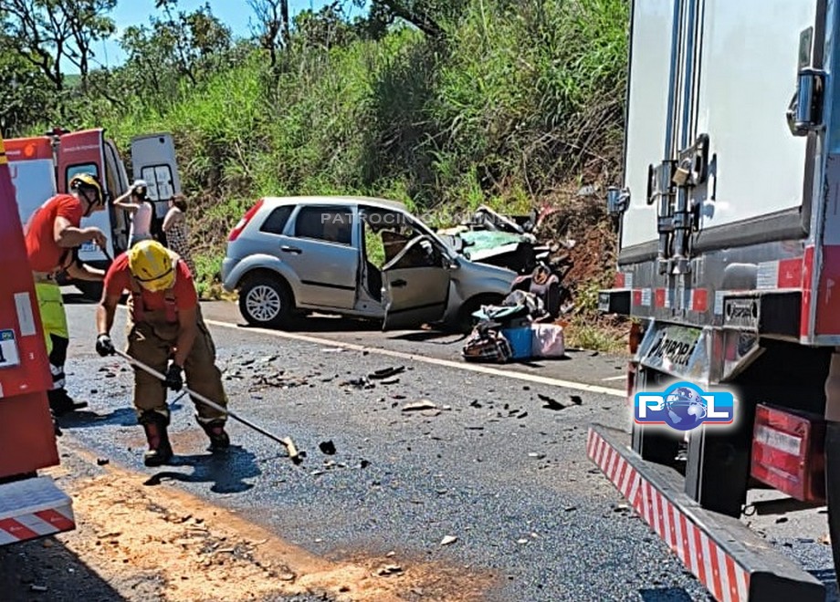 Segundo informações, a colisão foi frontal oblíqua entre uma carreta que transportava iogurte de Paracatu para Patrocínio e um automóvel Fiesta, que transportava cinco ocupantes.