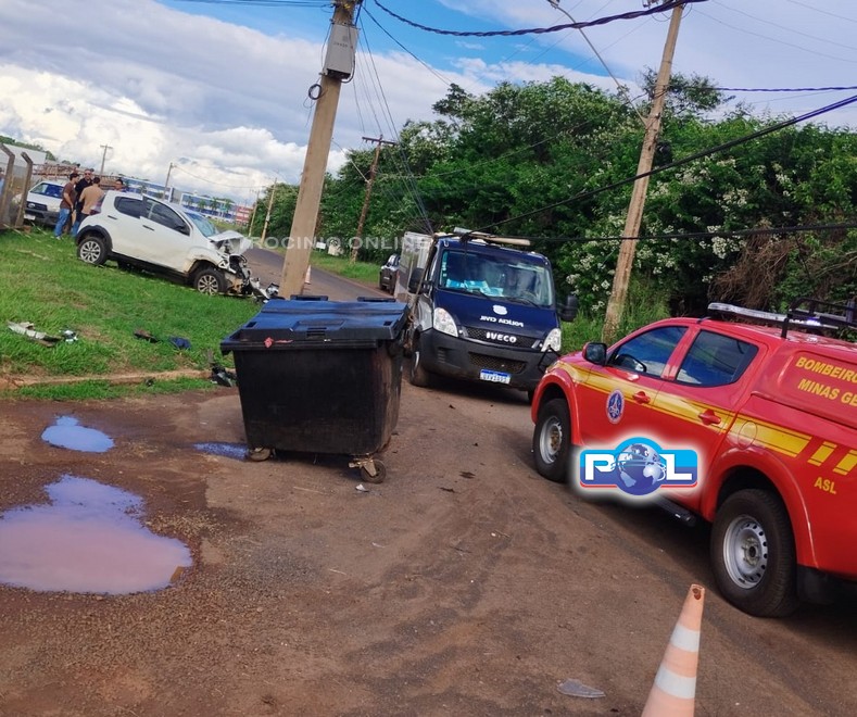 Em razão da colisão, o poste de energia apresentou inclinação, sendo a concessionária CEMIG acionada para avaliação e adoção das medidas cabíveis.