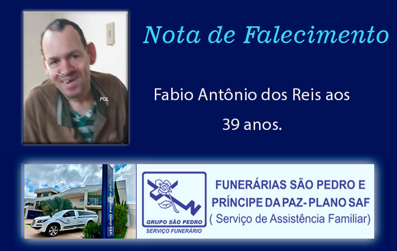 Faleceu nesta segunda-feira, 20 de abril de 2026, em Patrocínio/MG, Fabio Antônio dos Reis aos 39 anos.