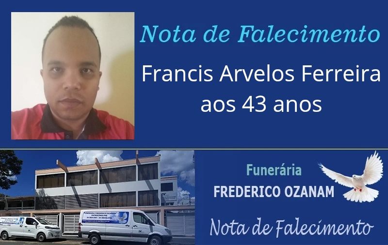 Faleceu nesta quarta-feira, 01 de abril de 2026, em Patrocínio/MG, Francis Arvelos Ferreira aos 43 anos.