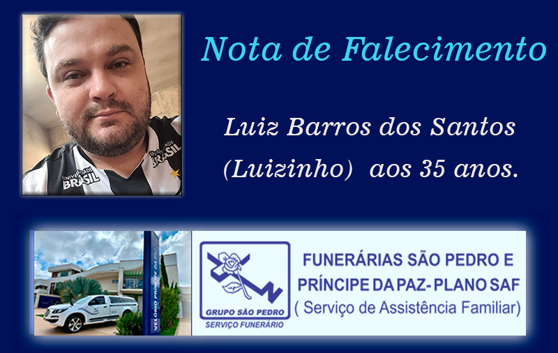 Faleceu nesta terça-feira, 27 de janeiro de 2026, em Patrocínio/MG, Luiz Barros dos Santos (Luizinho) aos 35 anos.