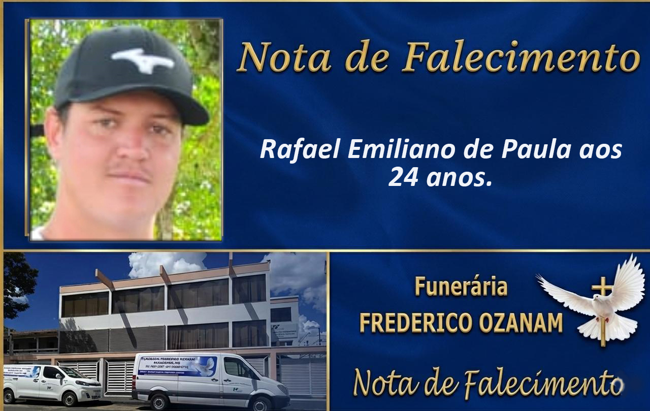 Faleceu neste sábado, 25 de abril de 2026, em Patrocínio/MG, Rafael Emiliano de Paula aos 24 anos.