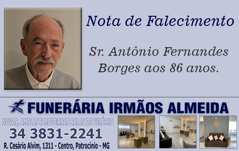 Faleceu nesta terça-feira, 17/2 em Patrocínio, o Sr. Antônio Fernandes Borges aos 86 anos.