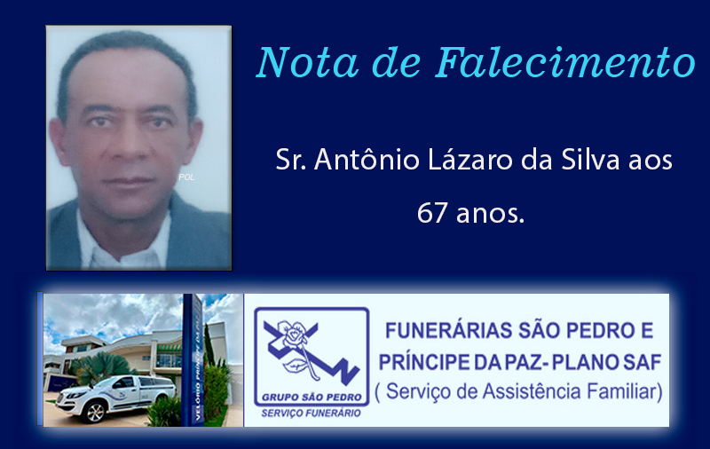 Faleceu nesta sexta-feira, 17 de abril de 2026, em Brejo Bonito/MG, Sr. Antônio Lázaro da Silva aos 67 anos.