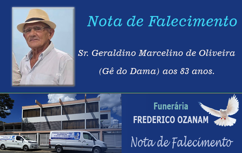 Faleceu nesta quarta-feira, 25 de março de 2026, em Patrocínio/MG, Sr. Geraldino Marcelino de Oliveira (Gê do Dama) aos 83 anos.