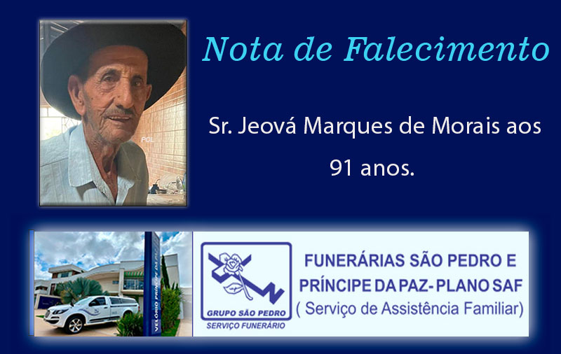 Faleceu nesta segunda-feira, 13 de abril de 2026, em Patrocínio/MG, Sr. Jeová Marques de Morais aos 91 anos.