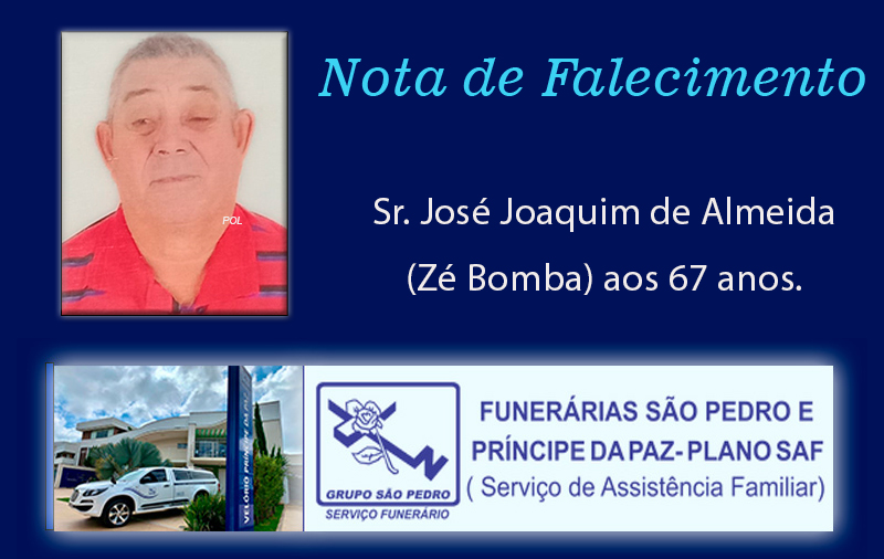 Faleceu nesta terça-feira, 28/4 em Patrocínio/MG, o Sr. José Joaquim de Almeida (Zé Bomba) aos 67 anos.